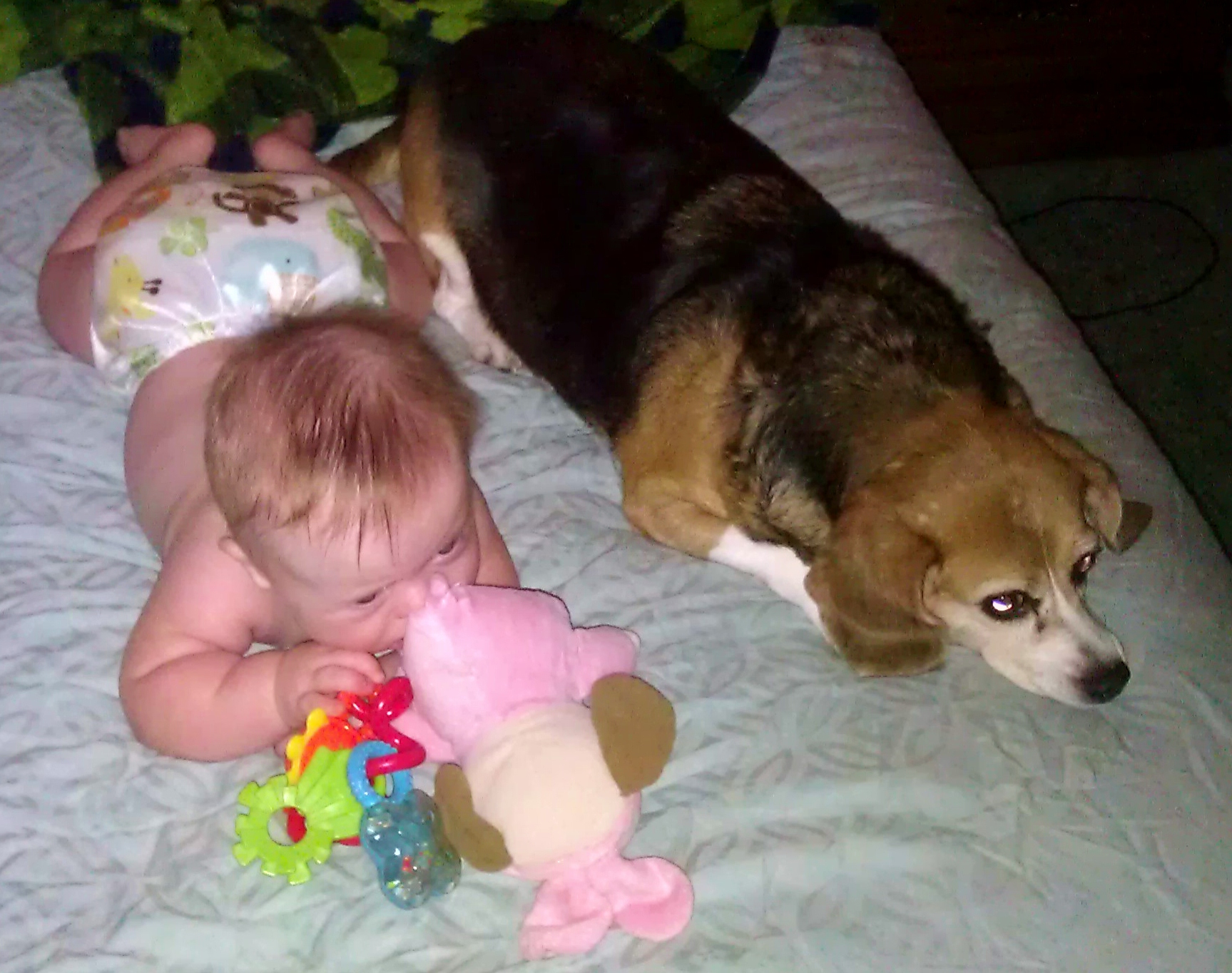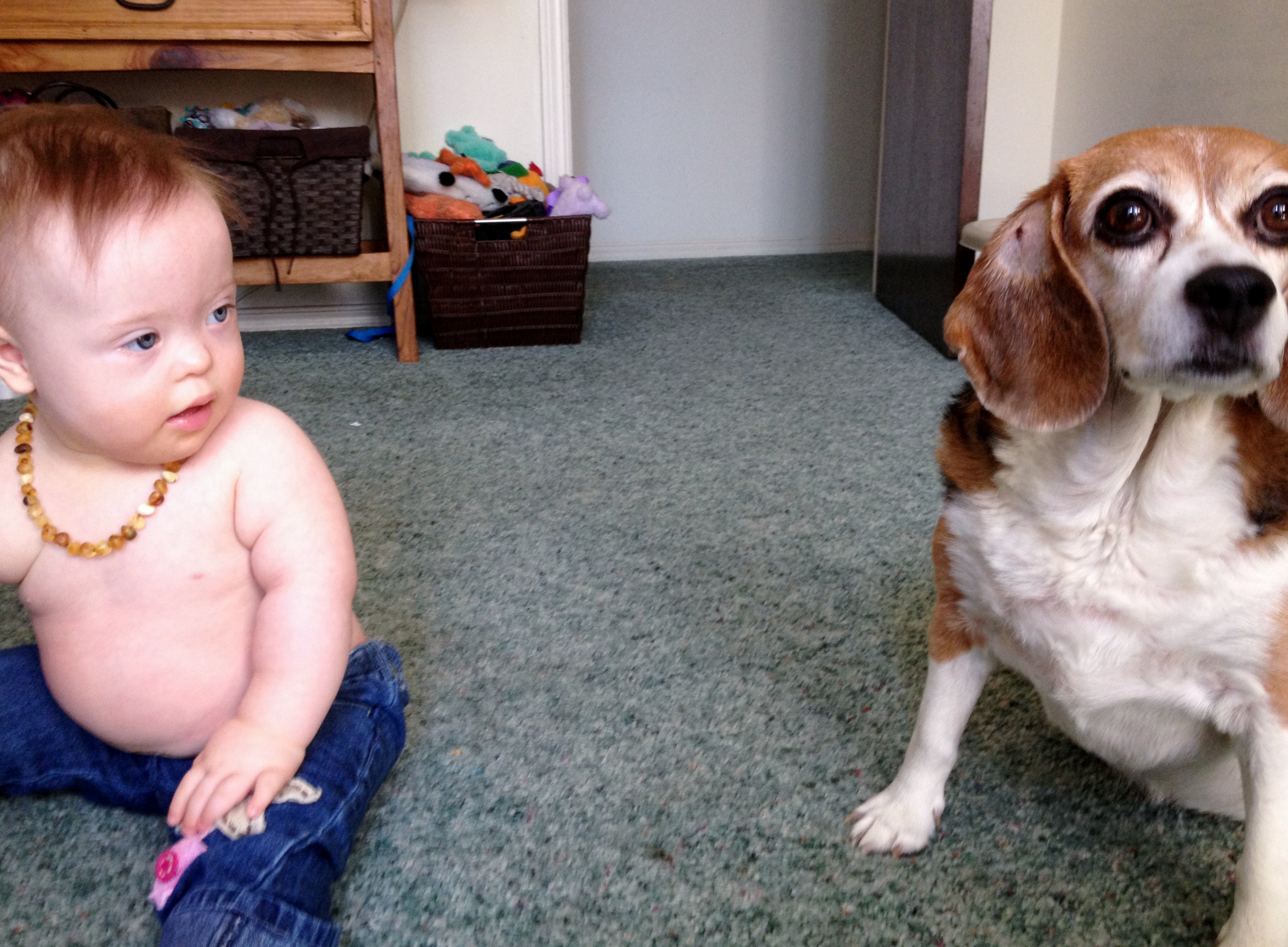Then Lily began to crawl. Oh boy were we ecstatic! And as much as we were happy, Molly was not. People forget how ‘scary’ babies are to dogs. They don’t know the rules of how to pet, where to pet, and bear hugs, erratic movements and abrupt tuggings are enough to make even the most mild mannered dog a little on edge. So with each new milstone Lily achieved, we took time to work with Molly and get her comfortable being around Lily. Our house was filled with praise as they both learned how to be around one another.