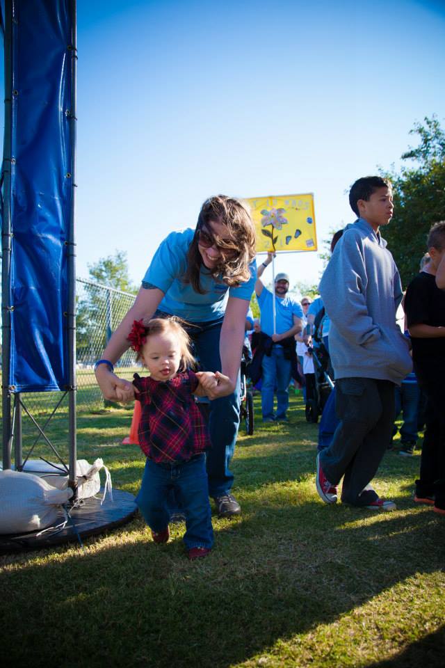 As I look at my little girl, I see so many things. I see big blue eyes, I see a fierce independent streak, I see a drive to accomplish whatever she sets her mind to, and I see an inner beauty that together with her outer beauty makes her quite striking and amazing. As she gets older, I also see Down syndrome. Down syndrome has shaped her eyes into an almond mold, made her ears and nose small, created smaller bones and a shorter stature, made her have to fight and struggle for everything she does, it is respsonsible for her inability to walk, created a frustration in her that is intense and stripped her of her confidence around groups of children.